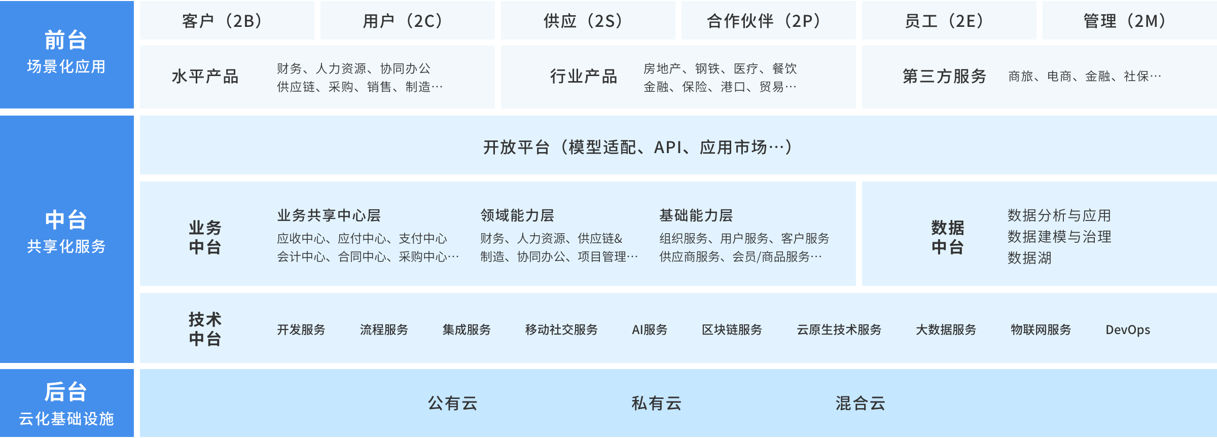 為企業(yè)提供多場景、多層次的數(shù)字化支撐,幫助企業(yè)快速構(gòu)建強大的數(shù)字化平臺,是EBC思想最佳的落地實踐平臺