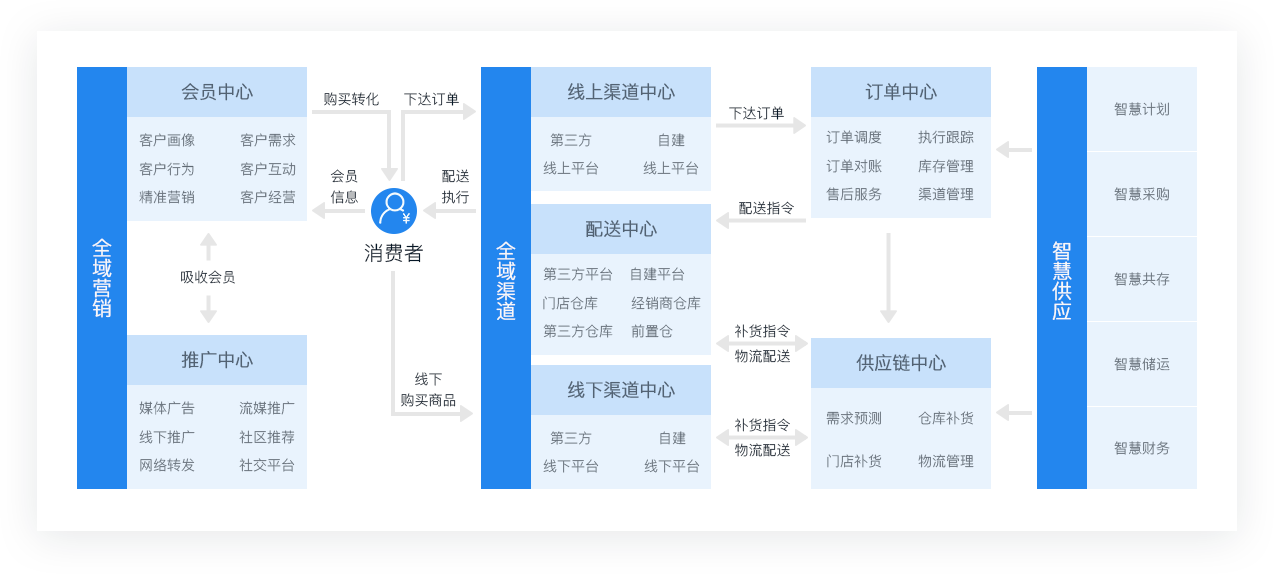 在線化的高效協(xié)作能力,智能化的敏捷決策能力,全面支撐貿(mào)易零售企業(yè)內(nèi)外部價值鏈重構(gòu),加快產(chǎn)品、渠道、服務(wù)的轉(zhuǎn)型升級