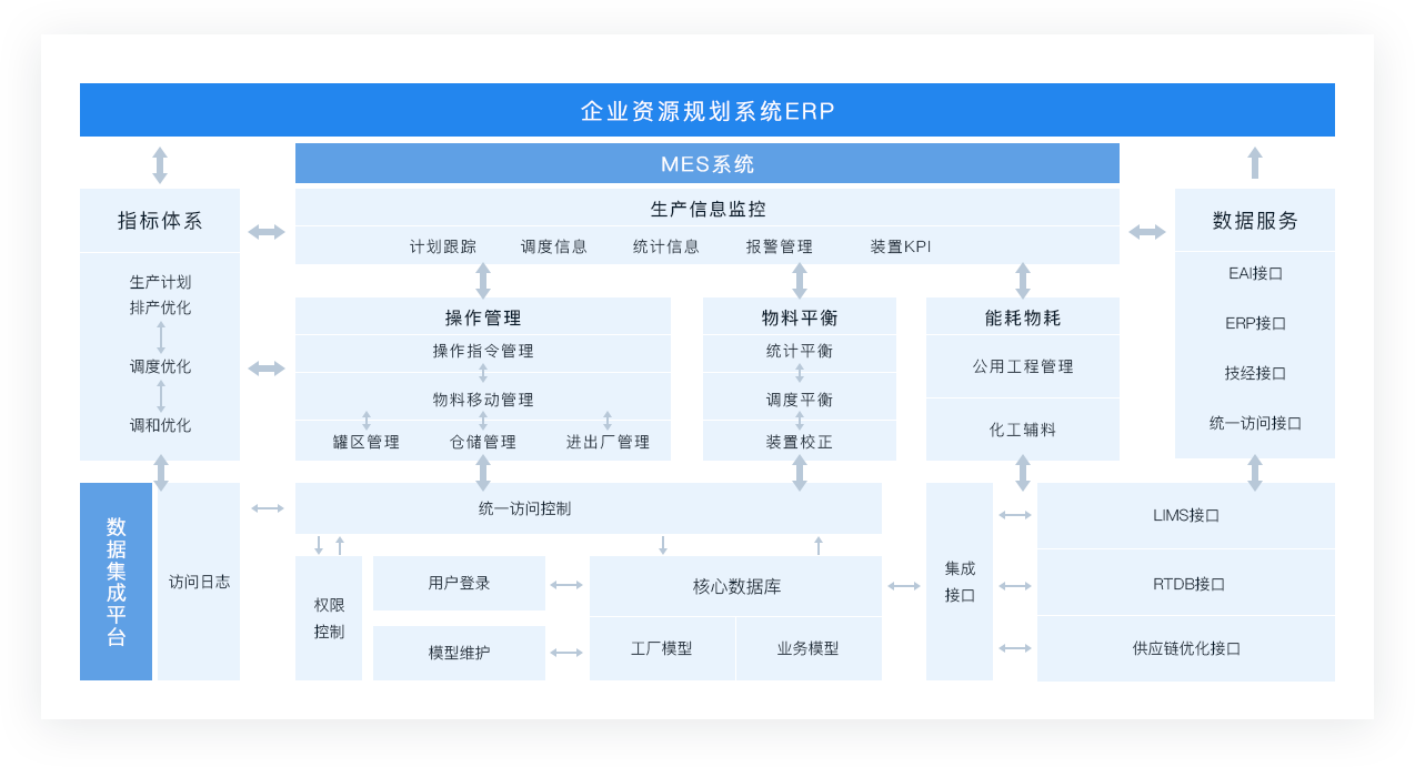 集成BI+PLM+ERP+MES的一體化解決方案,涵蓋計(jì)劃、統(tǒng)計(jì)、生產(chǎn)管理、質(zhì)量、設(shè)備、供銷、倉庫、成本、資金等專業(yè)業(yè)務(wù)領(lǐng)域的整體性解決方案。重視企業(yè)底層業(yè)務(wù)的執(zhí)行信息和過程監(jiān)控,重視利用MES層的業(yè)務(wù)信數(shù)字化價(jià)值,對生產(chǎn)經(jīng)營管理層的支撐作用,以發(fā)展的角度充分考慮MES層不斷深入的應(yīng)用