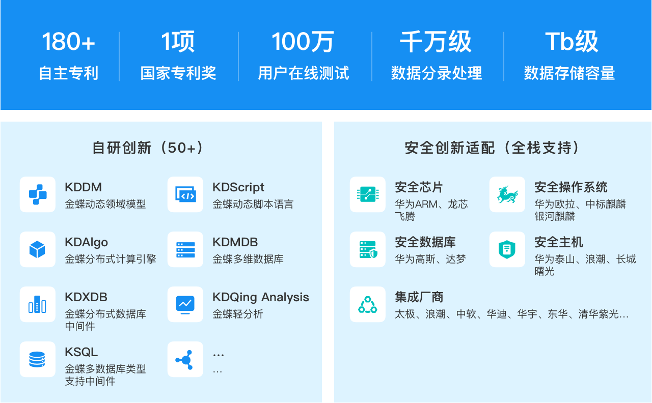 基于企業(yè)級云原生架構(gòu)和中臺思想,結(jié)合人工智能、區(qū)塊鏈、云計算、大數(shù)據(jù)、物聯(lián)網(wǎng)等創(chuàng)新科技及金蝶多年的企業(yè)級技術(shù)服務(wù)沉淀