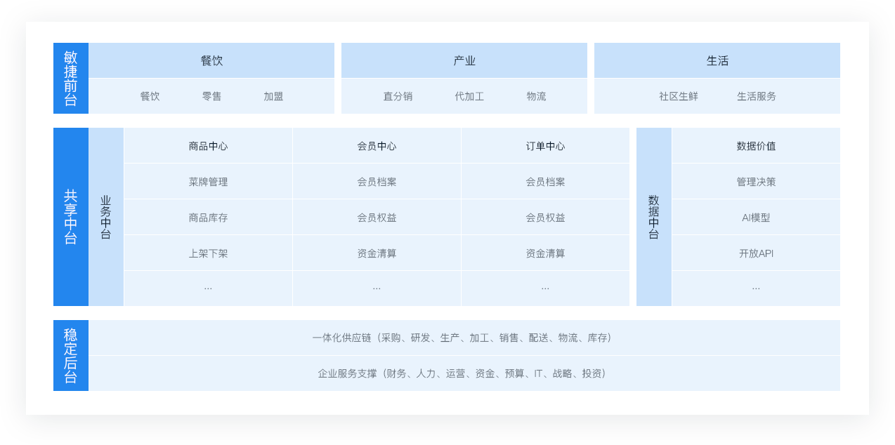 從戰(zhàn)略規(guī)劃設(shè)計(jì)出發(fā),把控企業(yè)運(yùn)營(yíng)、供應(yīng)鏈和消費(fèi)端,通過(guò)數(shù)字化轉(zhuǎn)型,對(duì)日常經(jīng)營(yíng)和消費(fèi)者數(shù)據(jù)進(jìn)行分析和監(jiān)控,并快速反饋,使經(jīng)營(yíng)更加精準(zhǔn)